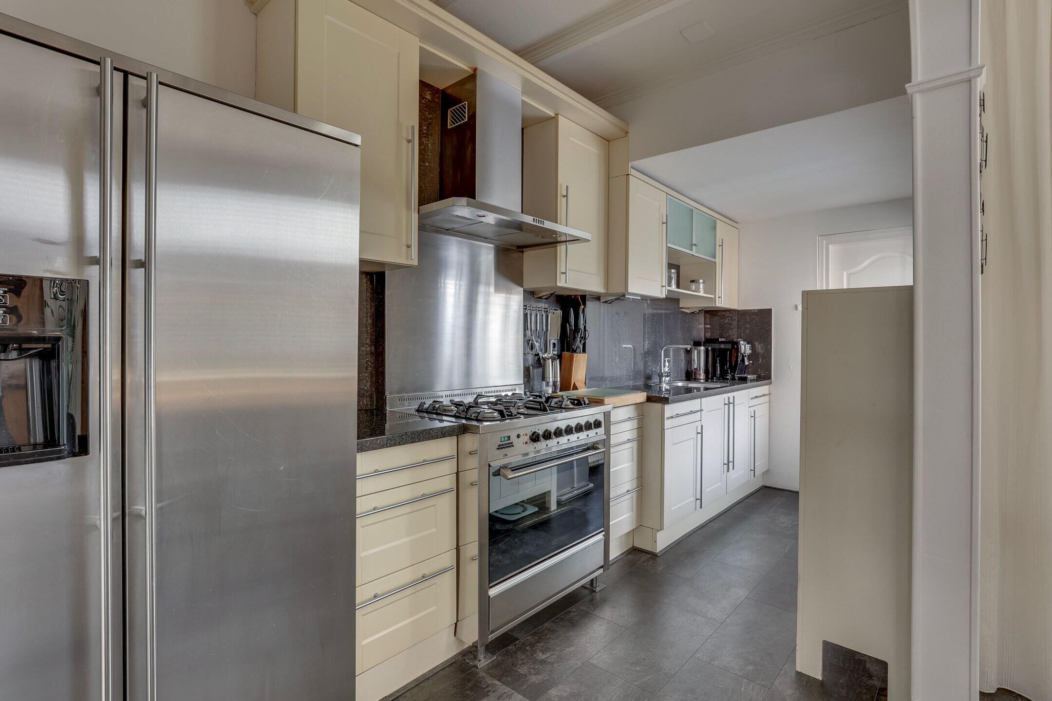 De woning beschikt over een knusse woonkamer met parketvloer en aan de voorzijde een karakteristieke erker die zorgt voor extra lichtinval en sfeer. Aan de achterzijde bevindt zich een tuingerichte eetkamer, met directe toegang tot de open keuken, voorzien van inbouwapparatuur en een granieten werkblad. De achtergelegen bijkeuken is praktisch ingericht met CV-ketel (2023) en witgoedaansluitingen.