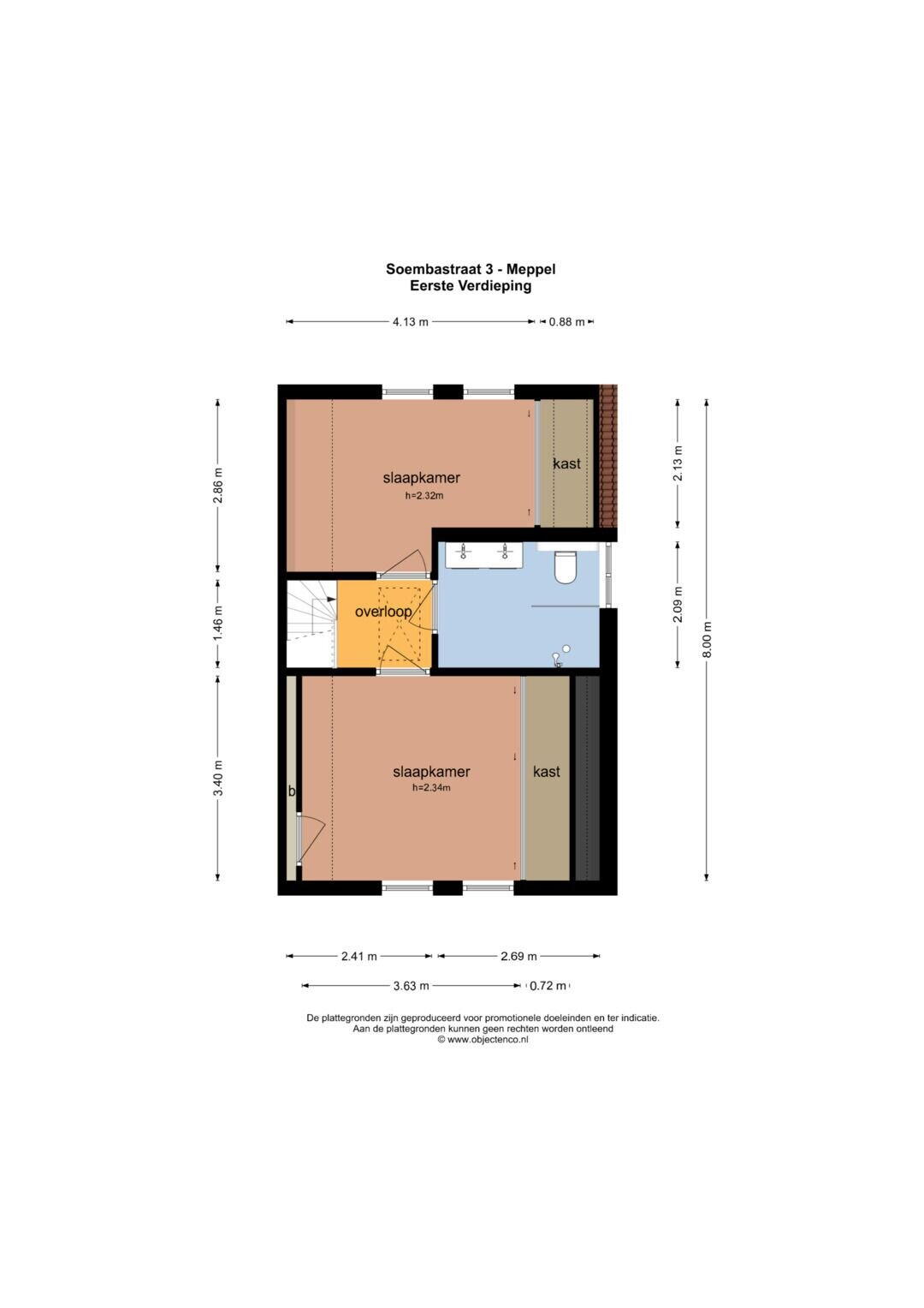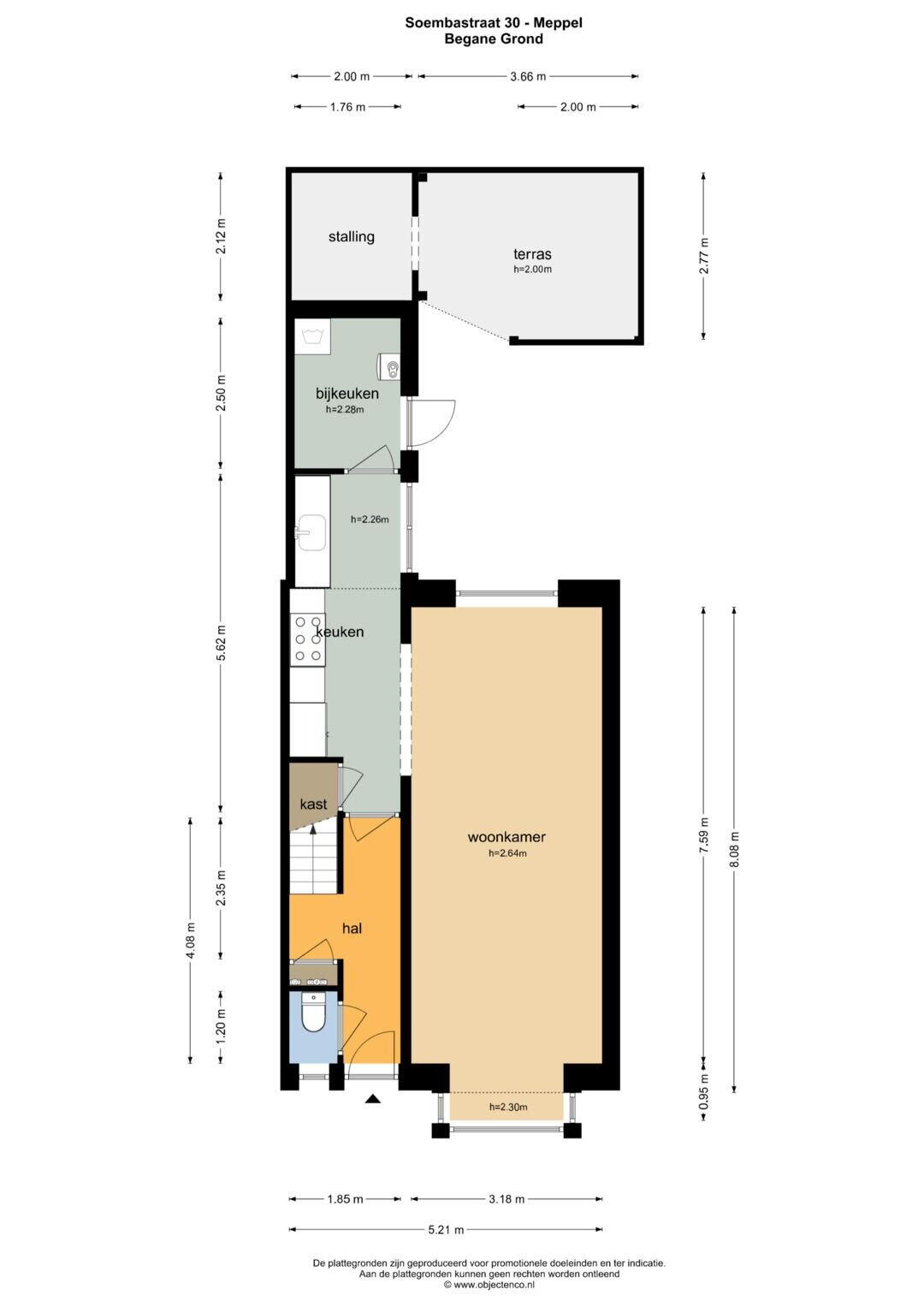- 38 m² (9,60 meter diep en 4,00 meter breed)